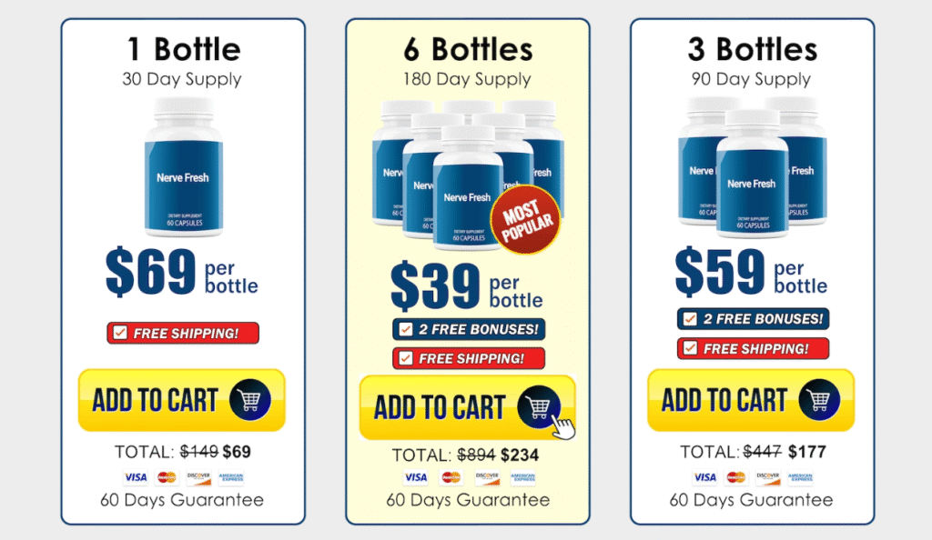 Nerve Fresh is available for purchase only through its official website. Pricing options include: